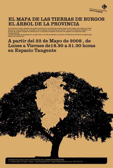 Dos puñados de tierra por cada pueblo burgalés son suficiente cantidad para rellenar el Mapa. Un millar largo de muestras, de dos puñados cada una, fundidas dentro de un contorno de líneas, y aún sobrará tierra para el crecimiento de un árbol. Una encina, como reina y señora en los bosques burgaleses, alimentada por tierra de más de 1.200 lugares, intentará erigirse en algún lugar prominente de la provincia como representante de un pueblo que, en lugar de separar, puede unir, que no pretende ser distinto a todos los demás, sino igual. Así, las pisadas y memoria de tantos miles, ¿o millones?, de burgaleses, vivos y desaparecidos, estarán dando aliento a una encina que crecerá para recordarnos lo que en verdad somos.