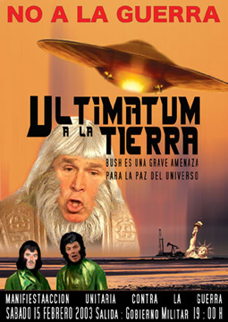 El afán imperialista y la obsesiva petrofilia de USA y sus aliados ha llevado al límite nuestra paciencia y consideramos que Bush es un peligro horroroso y espeluznante para el Universo y que junto a él se ha venido tejiendo en las sombras la amenaza del EJE DEL MAL, compuesto por algunos miembros de la OTAN como España, G.Bretaña e Italia, Israel, Australia, y otros de la misma calaña, decididos todos ellos a desencadenar un ataque militar contra un pais pobre para el vacíado y escarificado de sus riquezas riquísimas: el petróleo.