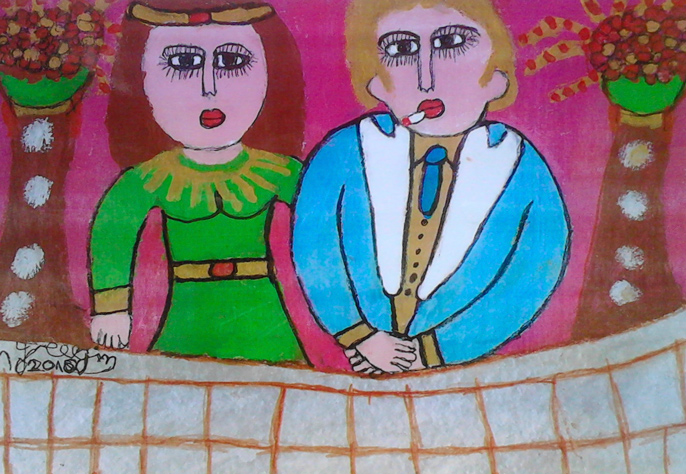 Además de una formación estrictamente autodidacta, Ángeles Jiménez, reúne muchos de los rasgos comunes a la producción de artistas englobados bajo la denominación de “arte naïf” o “arte ingenuo”: la predilección por temáticas populares y del folklore, expresadas mediante un lenguaje con fuertes vínculos poéticos; la espontaneidad y frescura de un proceso creativo ajeno a los aprendizajes y las convenciones académicas; un tono alegre, vital, trasladado al cuadro a través de una paleta de color viva y brillante, que enciende de inmediato una sonrisa en quien lo contempla. Pero sobre todo, comparte el punto de partida: la necesidad absoluta de hacer arte y expresarse a través del mismo, haciéndolo de forma “tan natural como el canto o el habla”. |