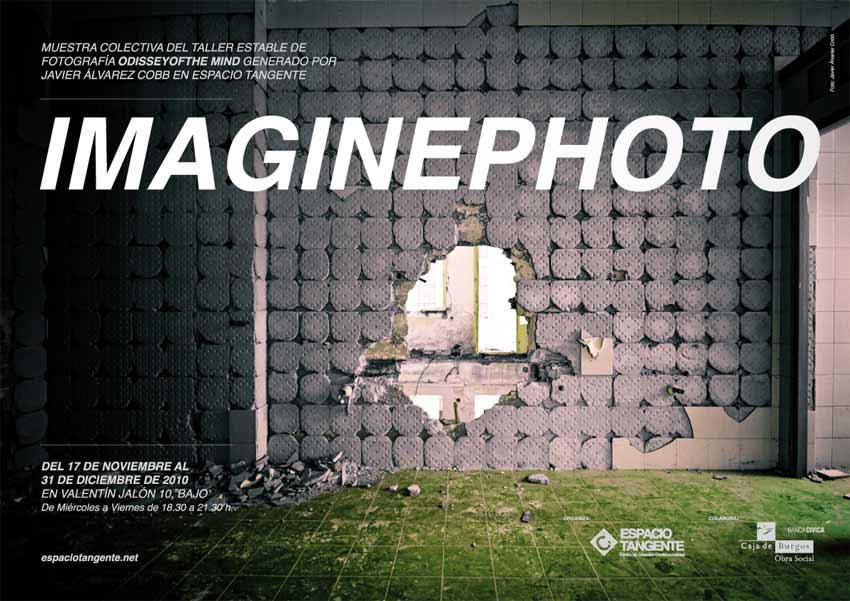 Esta muestra recoge 45 obras seleccionadas de entre más de 5.000 fotografías que se realizaron en los 5 meses de duración del Taller de fotografía digital ODISSEY OF THE MIND: IMAGINEPHOTO, generado por Javier Álvarez Cobb y desarrollado en Espacio Tangente entre Febrero y Junio de 2010. Un taller que investiga sobre las conexiones entre fotografía y literatura. La investigacion de las posibilidades expresivas de la Imagen fotografica y de sus análisis o posibilidades representativas y como vehiculo de contenidos mentales. 12 personas, once de ellas de Burgos, han participado en este taller. Perosnas con más o menos experiencia: autodidactas, profesores de audiovisuales, estudiantes, algunos han expuesto dentro y fuera del estado.