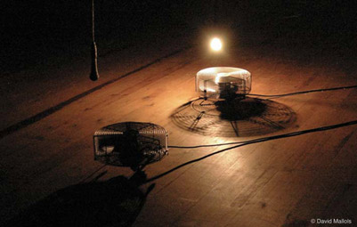 Cercano a aquello concebido como objeto danzante o coreográfico, Chronoscopio oscila entre la performance, la instalación en movimiento y el teatro de objetos. Con un modo de operación singular y pausado, se adentra en umbrales de percepción insólitos, apoyándose en fenómenos físicos y dejando que el objeto marque alegremente su omnipotencia.