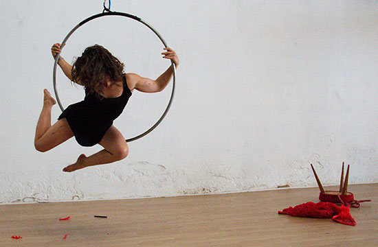 Especializada en acrobacias aéreas en vertical, se ha formado en diferentes escuelas de circo –E.M.C. de Alcorcón y Rogelio Rivel- también en espacios de creación-Central del Circ, La Parrala, Espacio Tangente, La Granerie, Harrobia Ezkena– donde también ha trabajado otros campos de la expresión corporal aplicados a la escena: improvisación, teatro físico, danza acrobática, danza en altura.