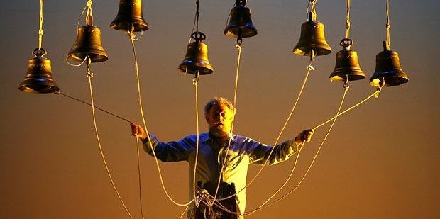 "Será un recital en el que me serviré de un 'campanario de bolsillo' compuesto de unos hierros en forma de plato, que me construí en 1981 cuando en un ferretería del viejo madrid me tropecé con unos llamados 'fondos-de-calderería' e ilusionado por su resonar, lo convertí en instrumento. Su bello desafine y mis alados brazos armados de baquetas se unirán a un cantar en difonía. Olas de melancolía y ceremonia se intercalarán con llamadas a fiesta y exaltación.