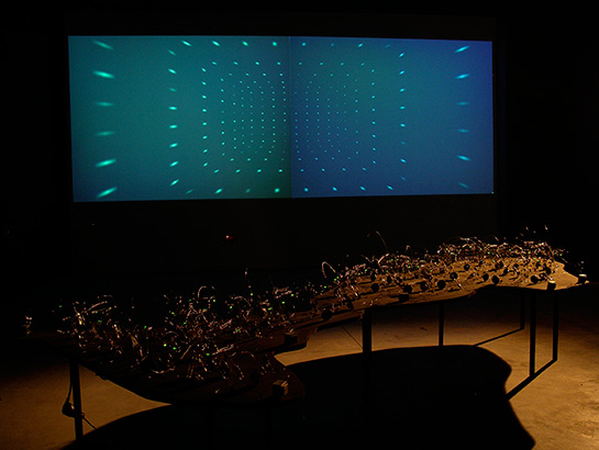 Nuestro set para live está compuesto por dos ordenadores, un sintetizador, un reproductor de cd para djs, un micrófono y algunos aparatos de efectos para el mismo. Ambos componemos y ambos tocamos. Además seleccionamos minuciosamente las imágenes que queremos proyectar de nuestro propio archivo digital.