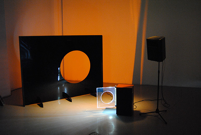 ECOICONOCLASTAS Ajeno casi siempre tanto a las circunstancias del mundo del arte como a las del mundo de la música, el sonido se ha desenvuelto habitualmente de manera ambigua en las procelosas aguas de la vanguardia: su carácter de flujo, sin embargo, le ha dado la maleabilidad suficiente para encontrar siempre un hueco, una falla por la que colarse y poder existir. Un intersticio. En esta exposición titulada Ecoiconoclastas se propone como punto de partida una extensión del concepto de “iconoclasia” (el rechazo a las representaciones visuales) para llegar así hasta el de “ecoclasia” (“Eco” es sonido en griego); de tal modo que se establece un diálogo entre la actitud de rechazo a ciertas representaciones visuales y una actitud de rechazo también a las representaciones sonoras más convencionales. Este rechazo será de hecho, en la mayoría de los casos de los artistas experimentales sonoros, el punto de partida para un trabajo de creación que se aleja de los relatos musicales o meramente narrativos. Cada uno de los artistas miembros del grupo propone aquí una obra diferente, que se mueve entre la performatividad y el juego interactivo, oscilando muchas veces entre las imágenes que pueden ser producidas por la física del sonido y los sonidos que pueden ser producidos por los movimientos de la imagen.