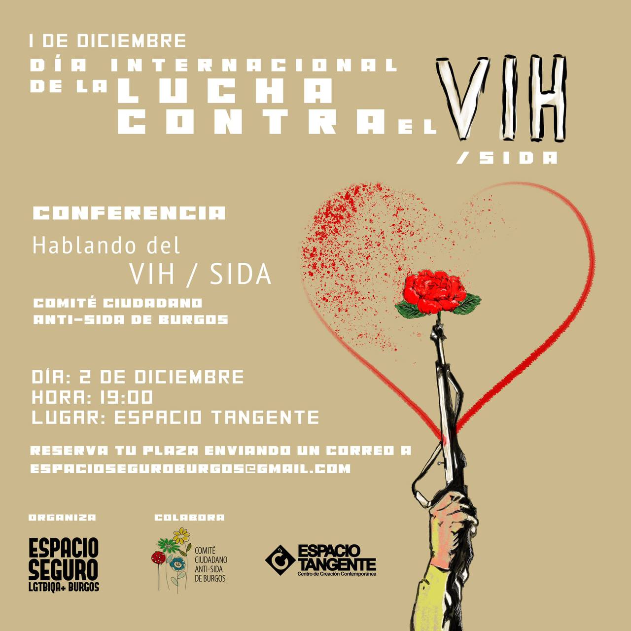 Comité Ciudadano Anti-Sida de Burgos El próximo 1 de diciembre se celebra el #DíaMundialdelSida #DíaDeLaLuchaContraelVIHSIDA y desde @espacioseguroburgos y @sidaburgos os invitamos a la conferencia 'Hablando del VIH/Sida' que hemos organizado en @espaciotangente. La charla correrá a cargo de los compis de @sidaburgos