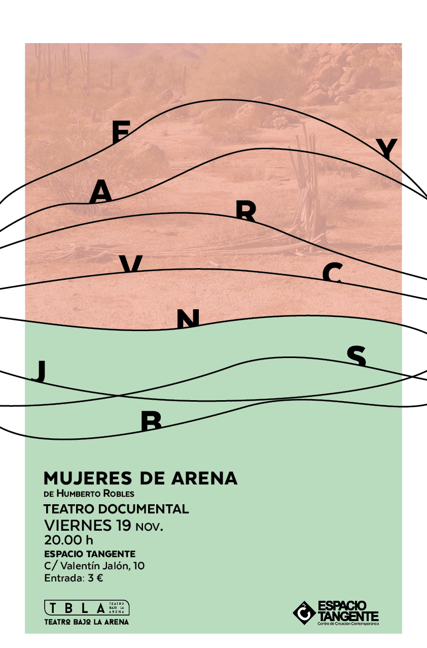 "Mujeres de arena" es una obra de teatro documental escrita por Humberto Robles con textos de Antonio Cerezo Contreras, Marisela Ortiz, Denise Dresser, Malú García Andrade, María Hope, Eugenia Muñoz y Juan Ríos Cantú. La versión que presentamos combina el drama, los testimonios directos, la poesía, el ensayo o la reflexión que ya posee la obra de Humberto Robles y que ya de por sí invita a reflexionar, con música en directo y poemas de Gloria Alzandúa. Una representación que pretende dar eco al silencio de tantas mujeres calladas brutal y violentamente por la fuerza.