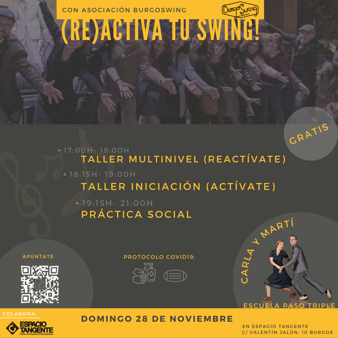 Espacio Tangente acoge una nueva colaboración y actividad con la asociación Burgoswing. Desde la asociación Burgoswing os invitamos a participar en este evento el próximo domingo 28 de noviembre. |
