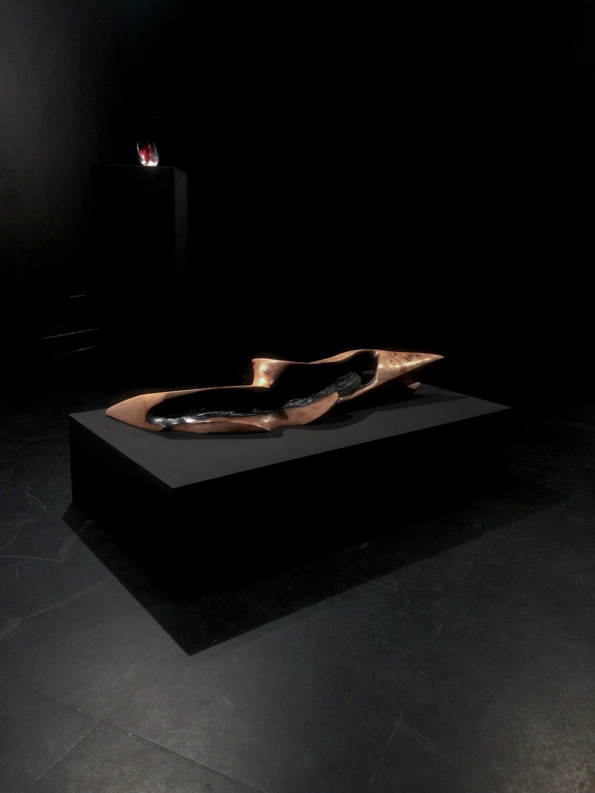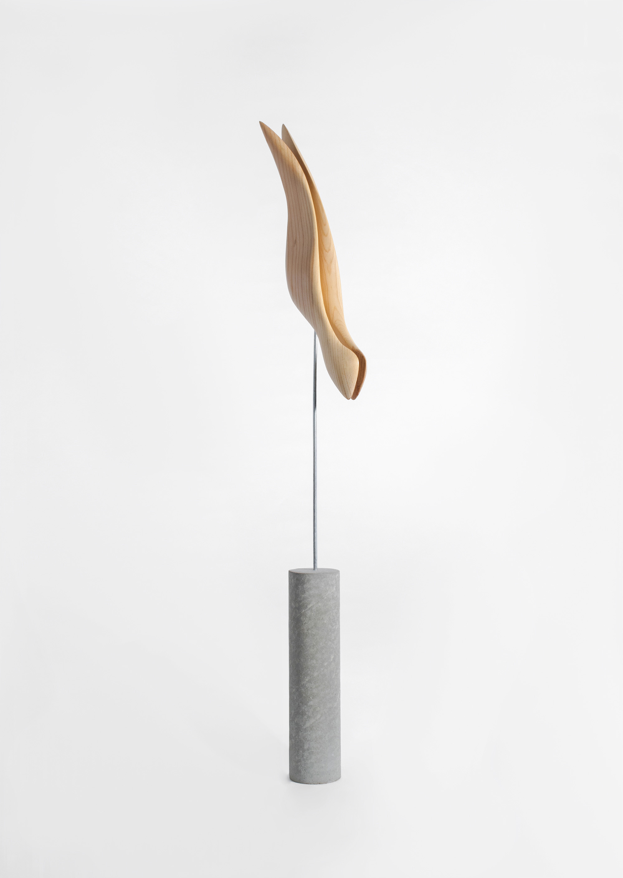 En todas sus esculturas la madera es protagonista y se conjuga con otros materiales o policromías para dotar de expresividad cada pieza. Su particular lenguaje se nutre del contraste y de la armonía por igual, buscando siempre la delicadeza en los acabados.