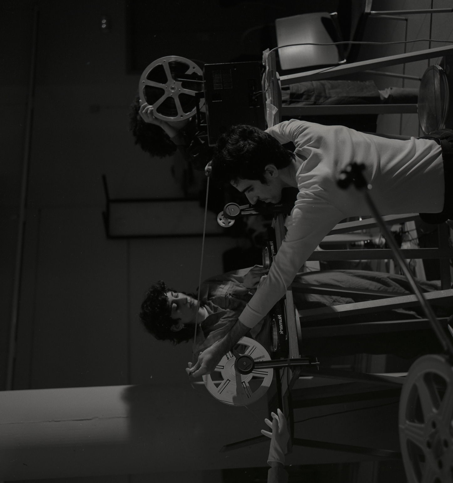 En Spin the Wheel-I like to hear it Spin ofrecemos una presentación expandida de la película clásica Johnny Guitar (Nicholas Ray, 1954) en su versión reducida a formato Super 8. Reconfiguramos el display de proyección que junto a la intervención musical en directo, construye una nueva situación que abarca el diálogo entre prácticas y suscita nuevas afecciones. El celuloide recorre el espacio, la imagen es transfigurada, la concentración juega al despiste entre el ojo y el latido, un baile sincrónico entre los fps y el bpm. En la película, Johnny es un virtuoso pistolero que deja sus armas para tocar la guitarra, con la que pretende seguir defendiéndose. En nuestros bolos, Las Synergys nos defendemos de las conexiones funcionales entre música, imagen y cuerpo, intercambiando las lógicas y nuestras herramientas. |