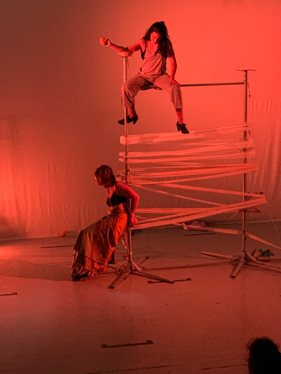 PUEDE QUE HAYA MANERAS DE ACERCARNOS Es una máquina que trata de mover cuerpos, tiempos, y espacios. A través de estos bailes deslocalizados, este dispositivo fuerza la idea de presente, intentando resolver a su vez la posibilidad de generar encuentros que no dependan únicamente de habitar un espacio/tiempo presente y común.