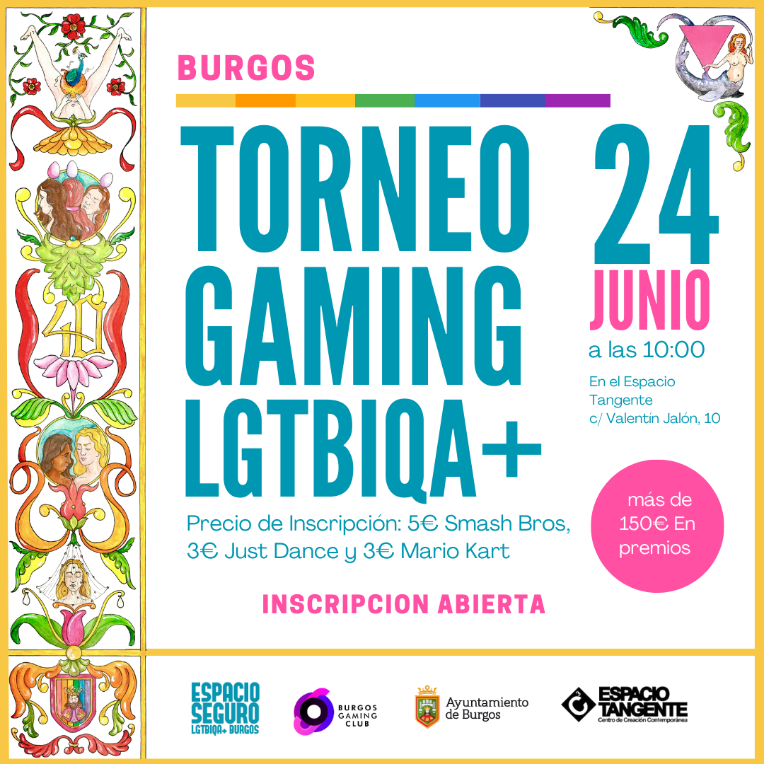 a las 10.00 h un torneo Gamer LGTBIQA+ donde se jugará a tres juegos (Smash, Just Dance y Mario Kart). Precio de inscripción: 5€ Smash Bros,3€ Just Dance y 3€ Mario Kart