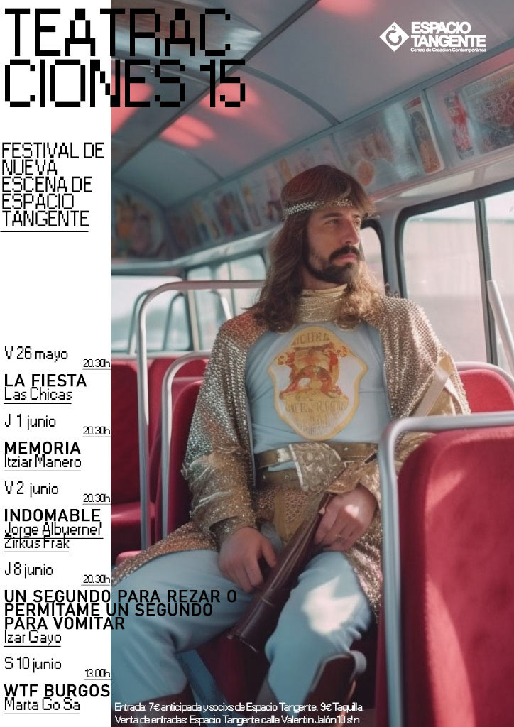 Teatracciones 15, el Festival de Nueva Escena de Espacio Tangente cuenta con 15 ediciones y se ha convertido en cita obligada con la escena más vanguardista. Se trata de un festival autogestionado que quiere acercar a la ciudad de Burgos propuestas escénicas arriesgadas e innovadoras, con muy escasas oportunidades de verse en la programación anual de las instituciones o iniciativas privadas, especialmente fuera de los circuitos de las grandes ciudades.