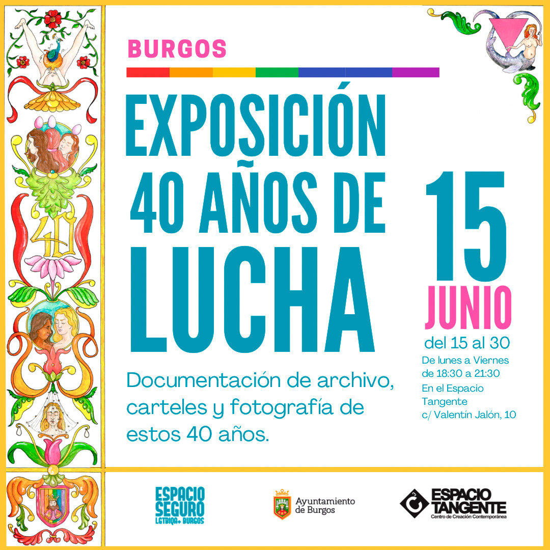 La asociación Espacio Seguro conmemora los 40 años de reivindicaciones del colectivo LGTBI+ en Burgos con actividades culturales como charlas y exposiciones desde el día 2 de junio hasta el 30 de julio.