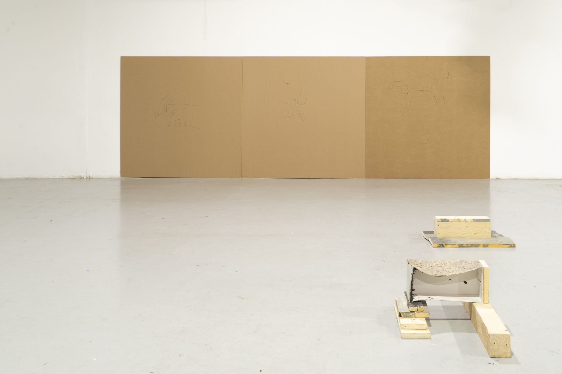 HAY AGUJEROS QUE PARECEN AFUERA La exposición reúne el trabajo de Javier Galán y (1995, Badajoz) y Claudia Pastomas (1998, Valencia) cuyas prácticas artísticas coinciden en la materialización de formas pobres, tensiones estructurales, sólidos templados, un sistema de ensamblajes, reciclaje de materiales, y, en general, un gesto arqueológico con respecto al entorno donde viven y que encuentran como dado e infamiliar. Si los ejercicios de escritura de la historia occidental, deseando el rigor de forma totalizante, se caracterizaron por la omisión del relato personal y de lo anecdótico (como todo aquello que no resultase condicionante para el objeto de estudio), plantear la práctica artística y el pensamiento como un ejercicio a contrapelo, precisamente desde lo anecdótico, se convierte en una herramienta clave para emplear el contexto histórico de un material contra sí mismo. Siempre hay un ripio para hacer pared.Curado por Mencía Machado y Miguel Rubio (Algo Algo Editorial)